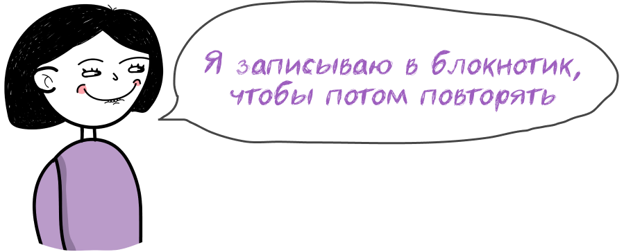 А дальше я стала встречать эти слова постоянно, потому что мой мозг перестал перескакивать незнакомые слова и выражения. Наоборот, он стал фокусироваться на них и создавать дополнительное касание, которое закрепляло слово в памяти и расширяло контексты употребления.